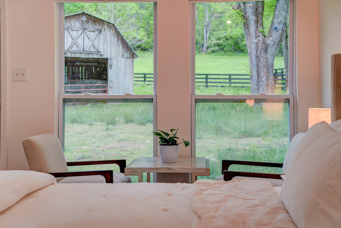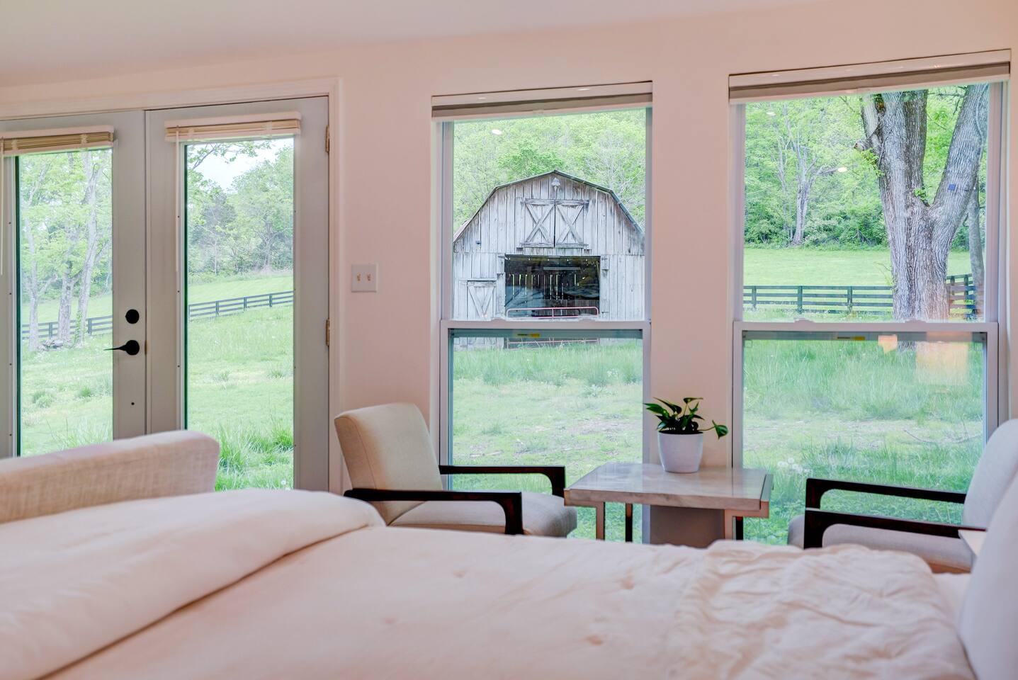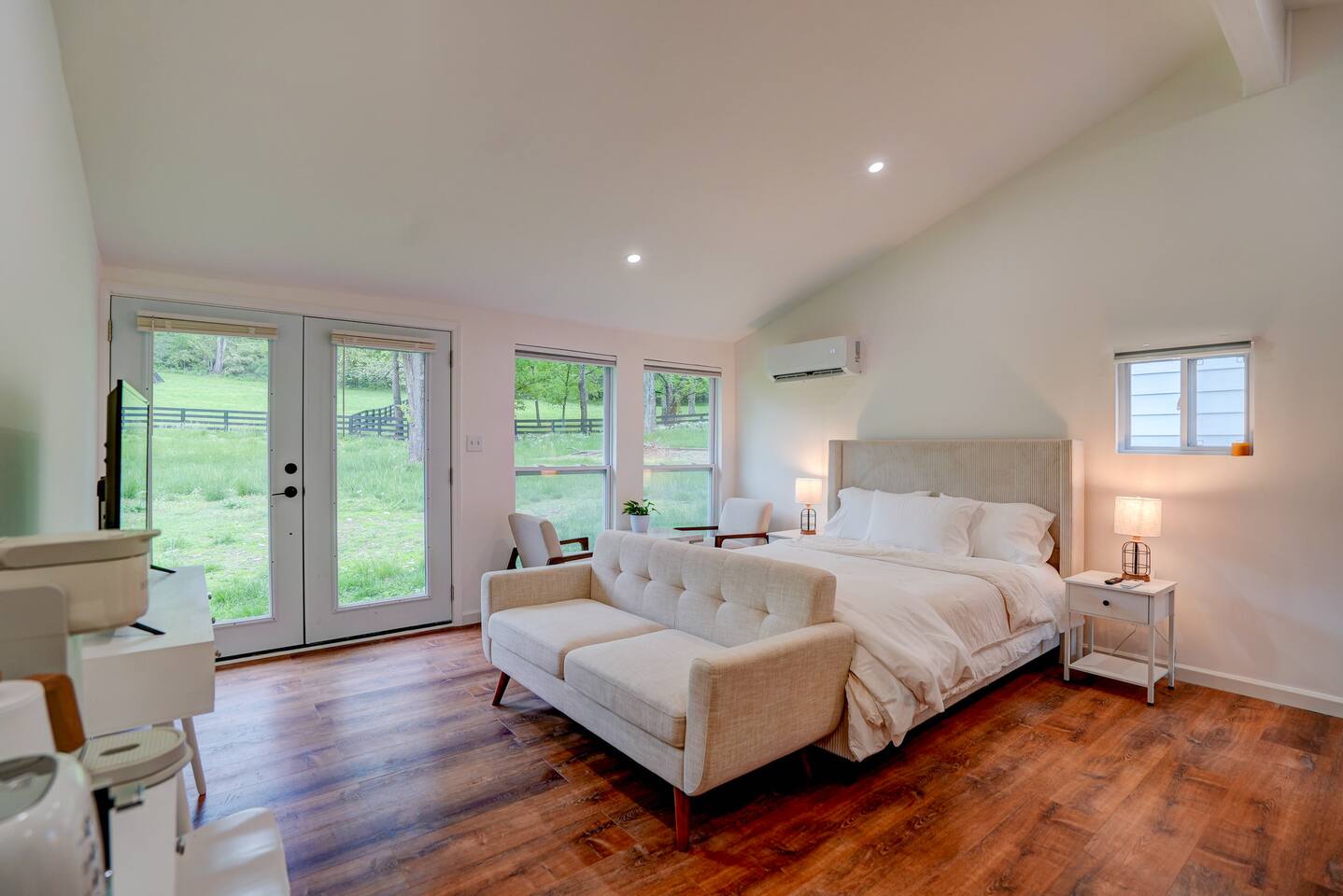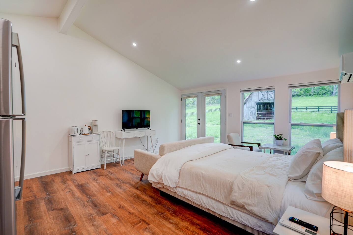 Enjoy your stay at our mini-farm retreat located between downtown Franklin and Leipers fork. Enjoy the view of our mini highland cows and goats out your back window. Start your morning with fresh chicken eggs from our hens and watch retriever Rosie tromping about the farm. We have a full kitchen, keurig, french press, fire tv, washer and dryer, and a full bathroom. You will have access to a gym and sauna shared with the other unit and the main house. 7 minutes to downtown and Leipers Fork
